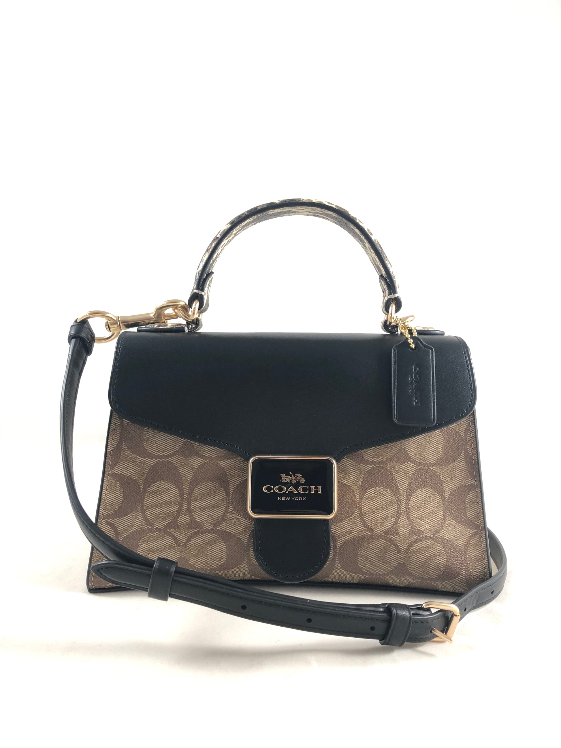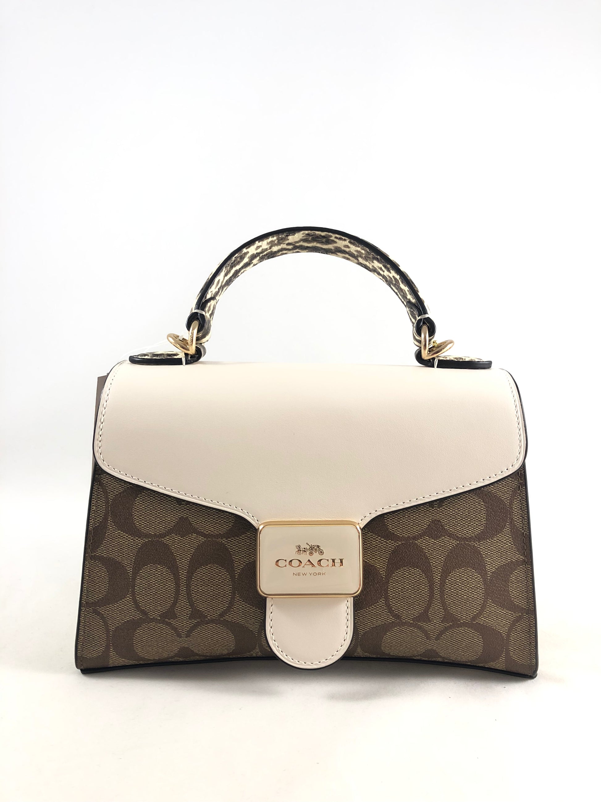 New Authentic Coach Signature Canvas Snake Embossed Pepper Satchel Handbag