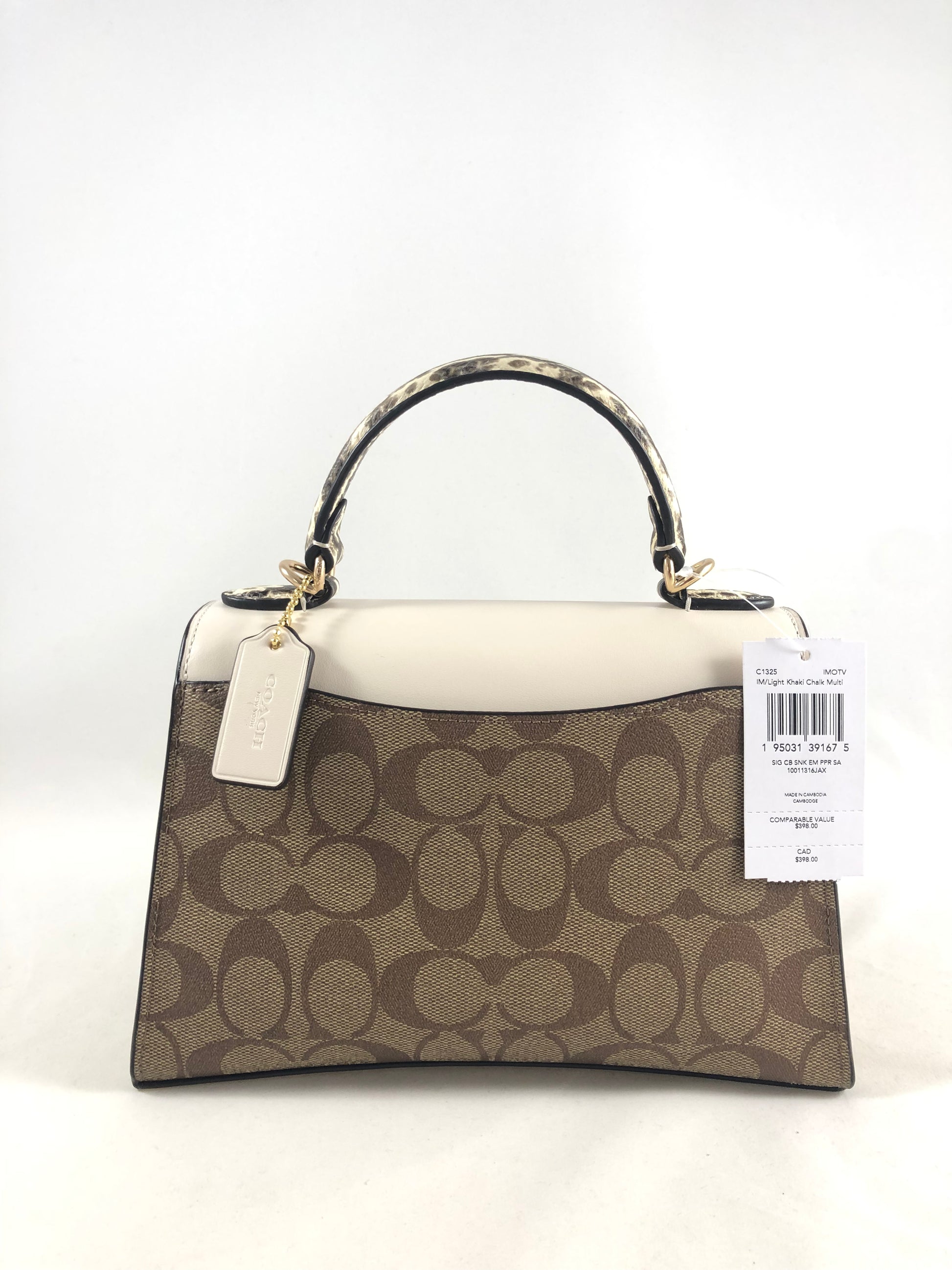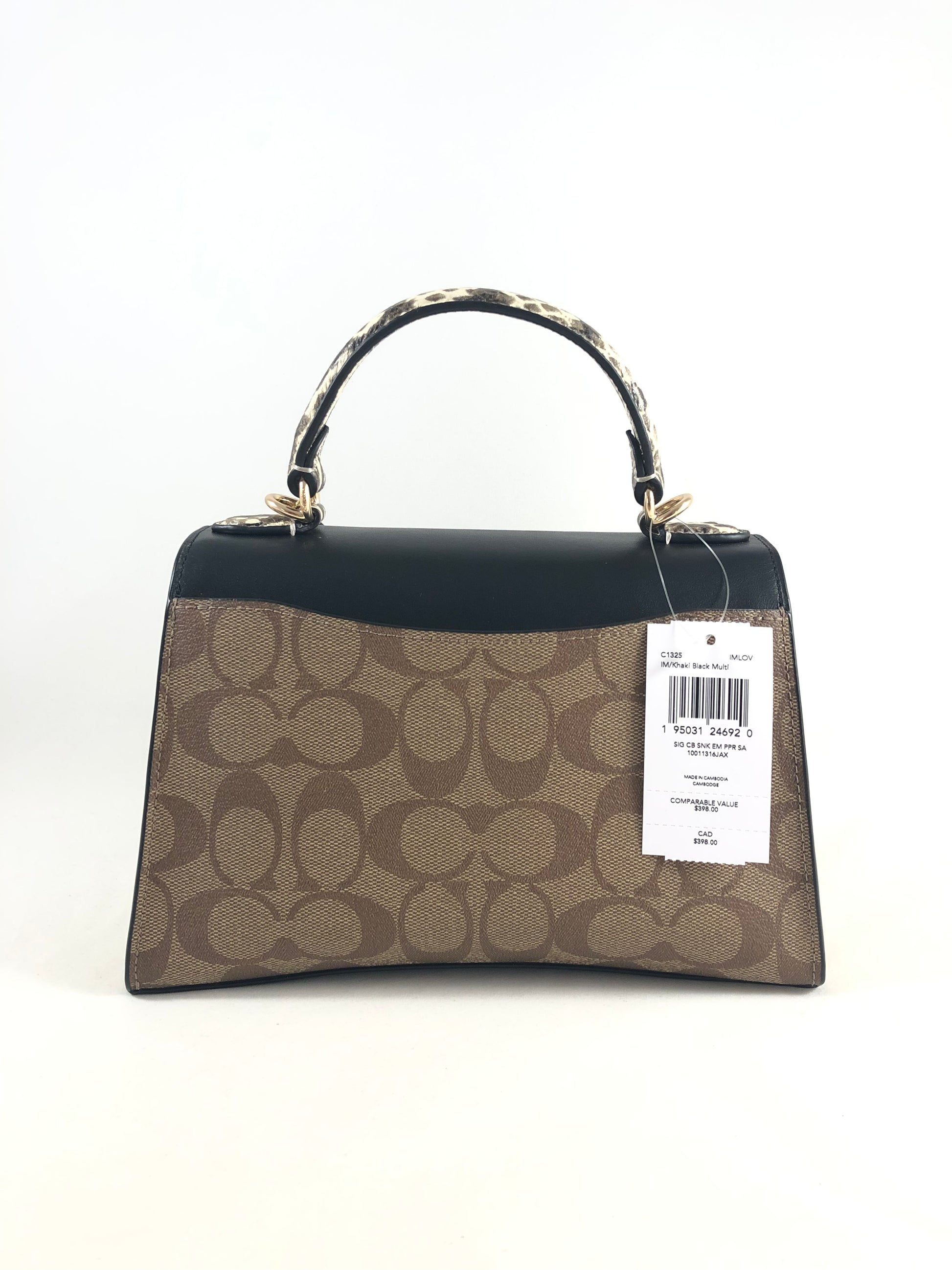 New Authentic Coach C1325 Signature Canvas Snake Embossed Pepper Satchel Handbag