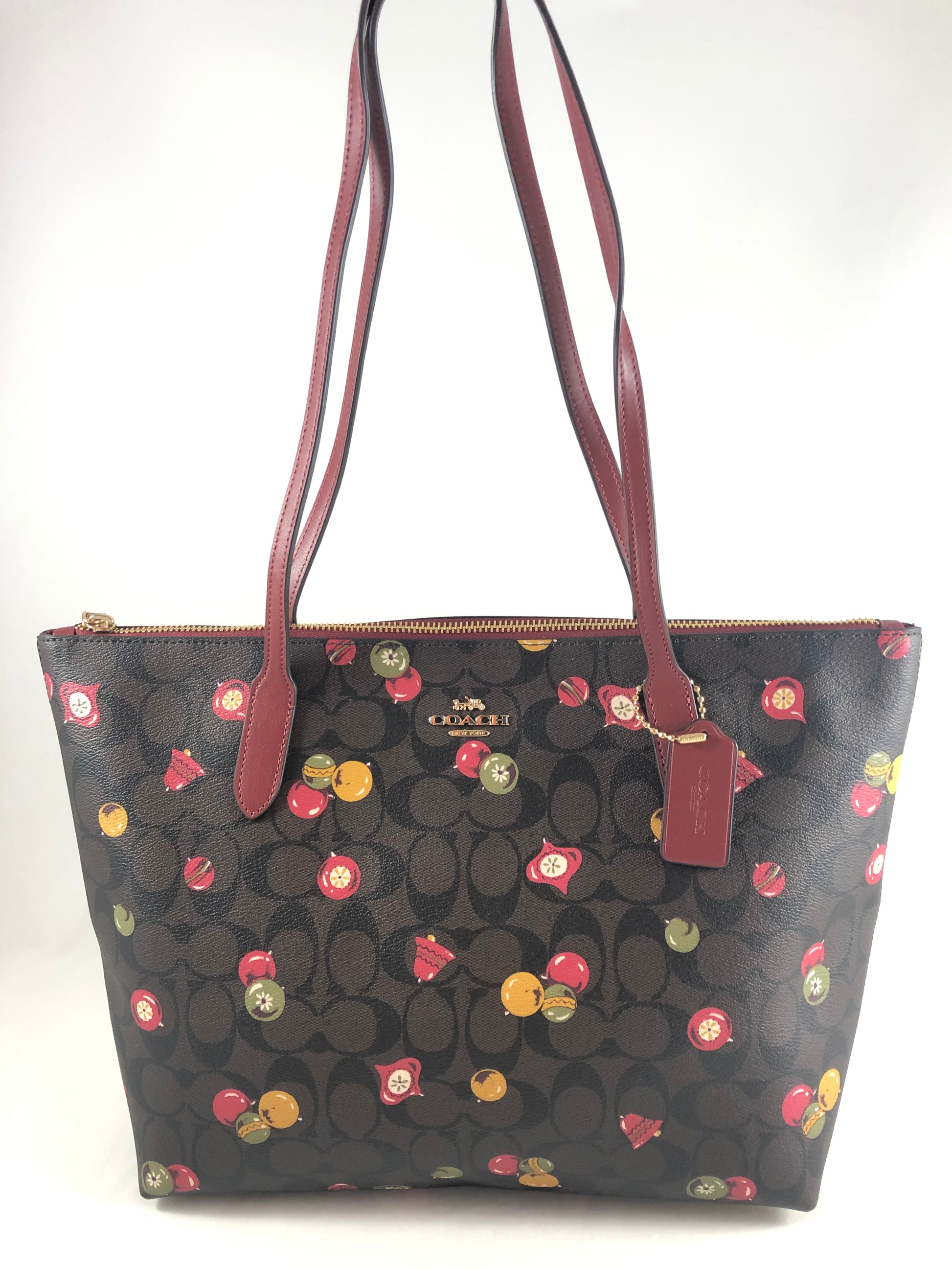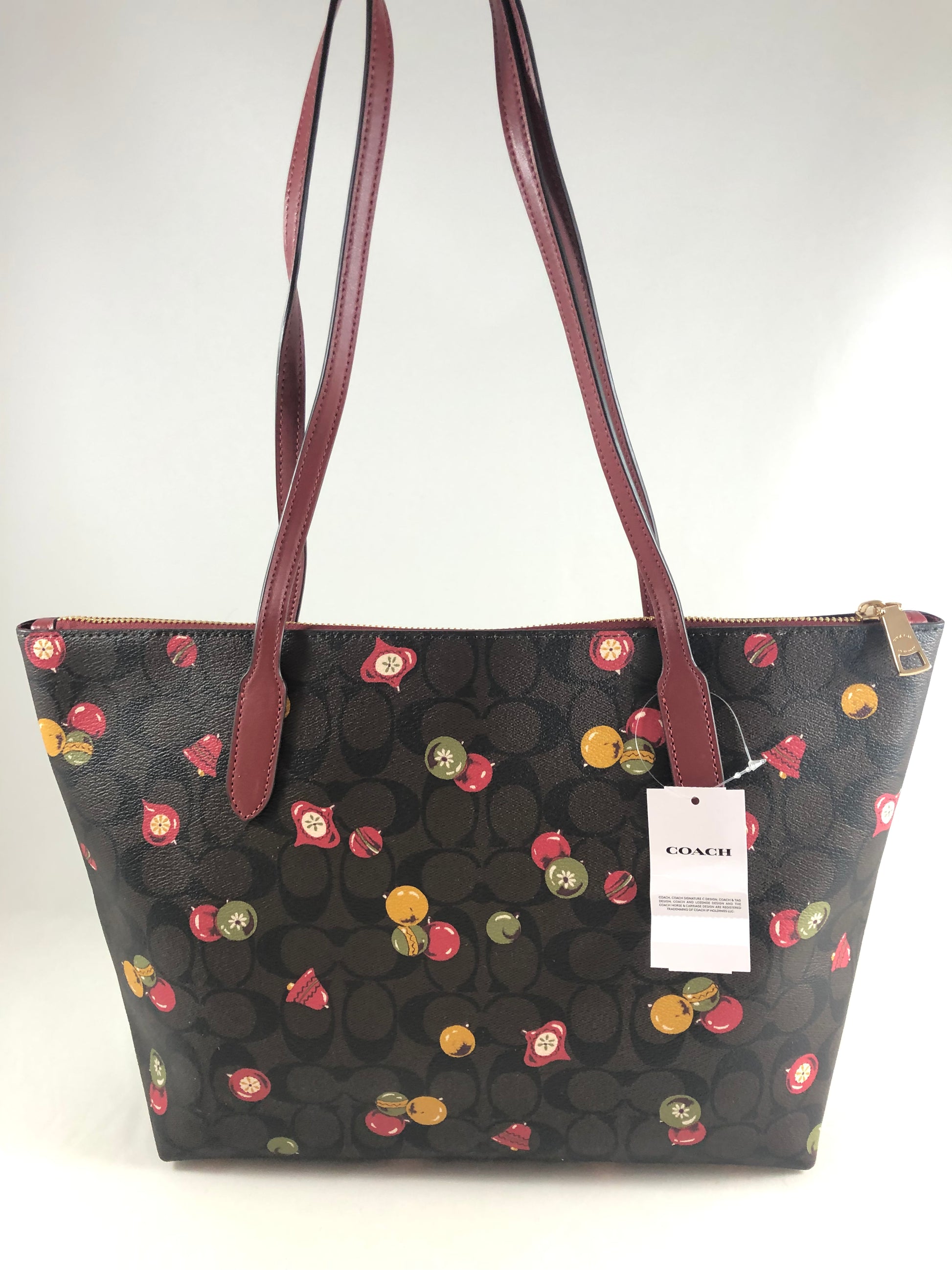New Authentic Coach Signature Ornament Print Zip Tote Handbag