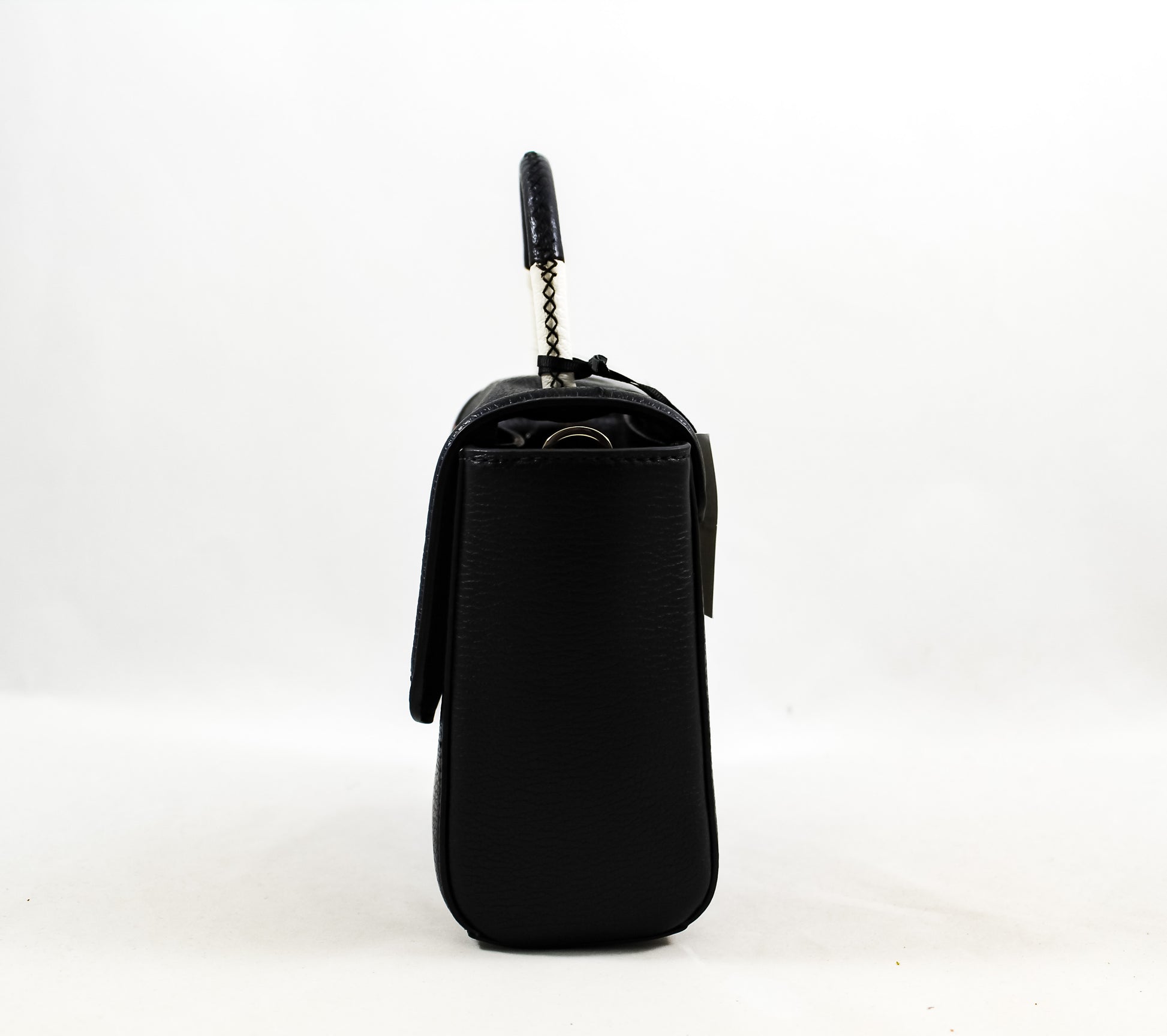 Stitched rolled leather top handle with 3" drop for hand carry