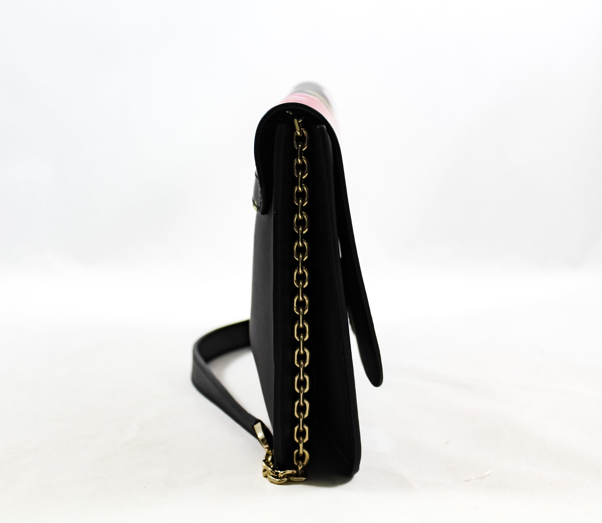 Chain and leather strap with 1.1.75" drop for shoulder wear