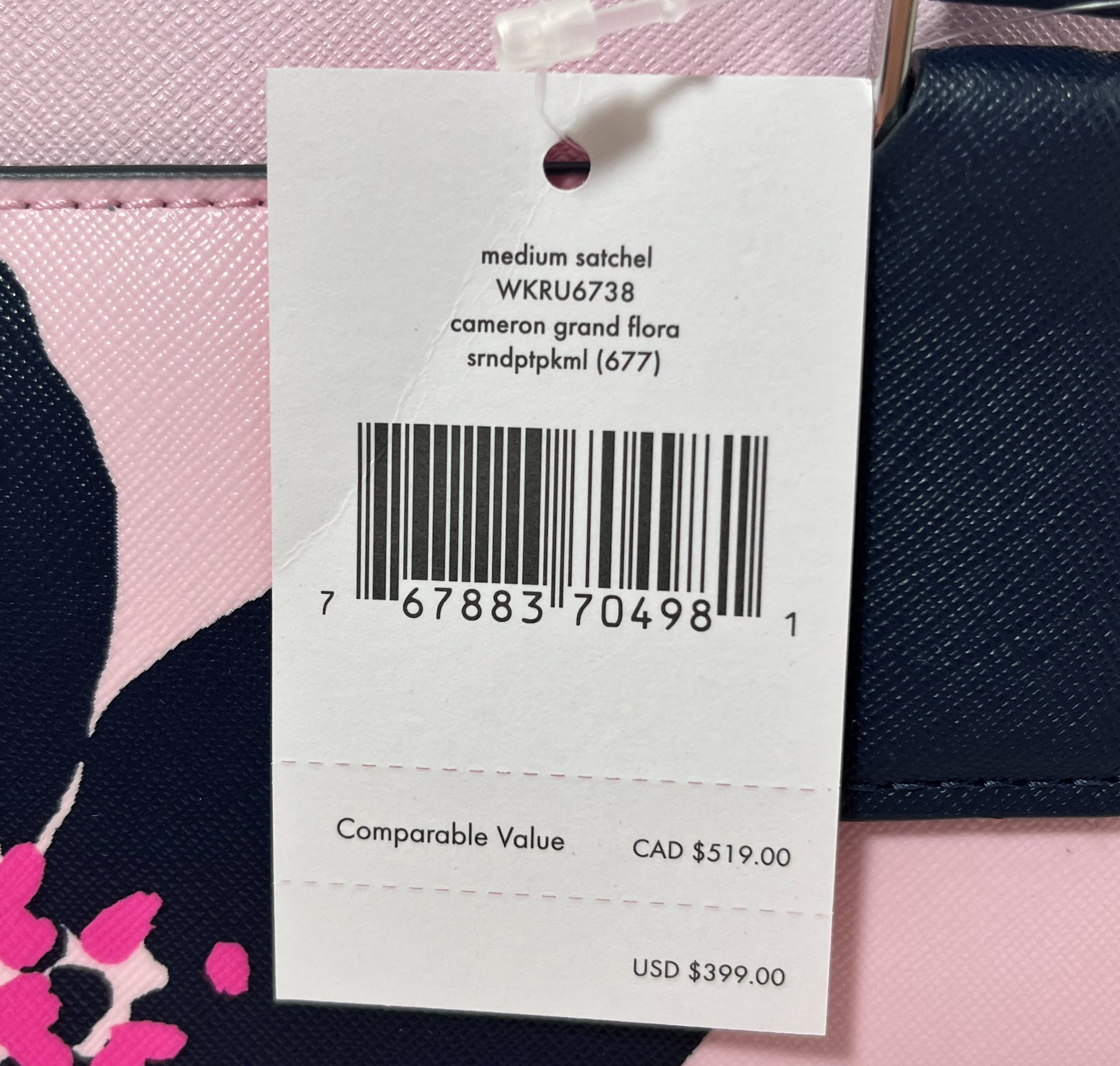 New Authentic Kate Spade WKRU6738 Cameron Grand Flora Medium Satchel Handbag Serendipity Pink