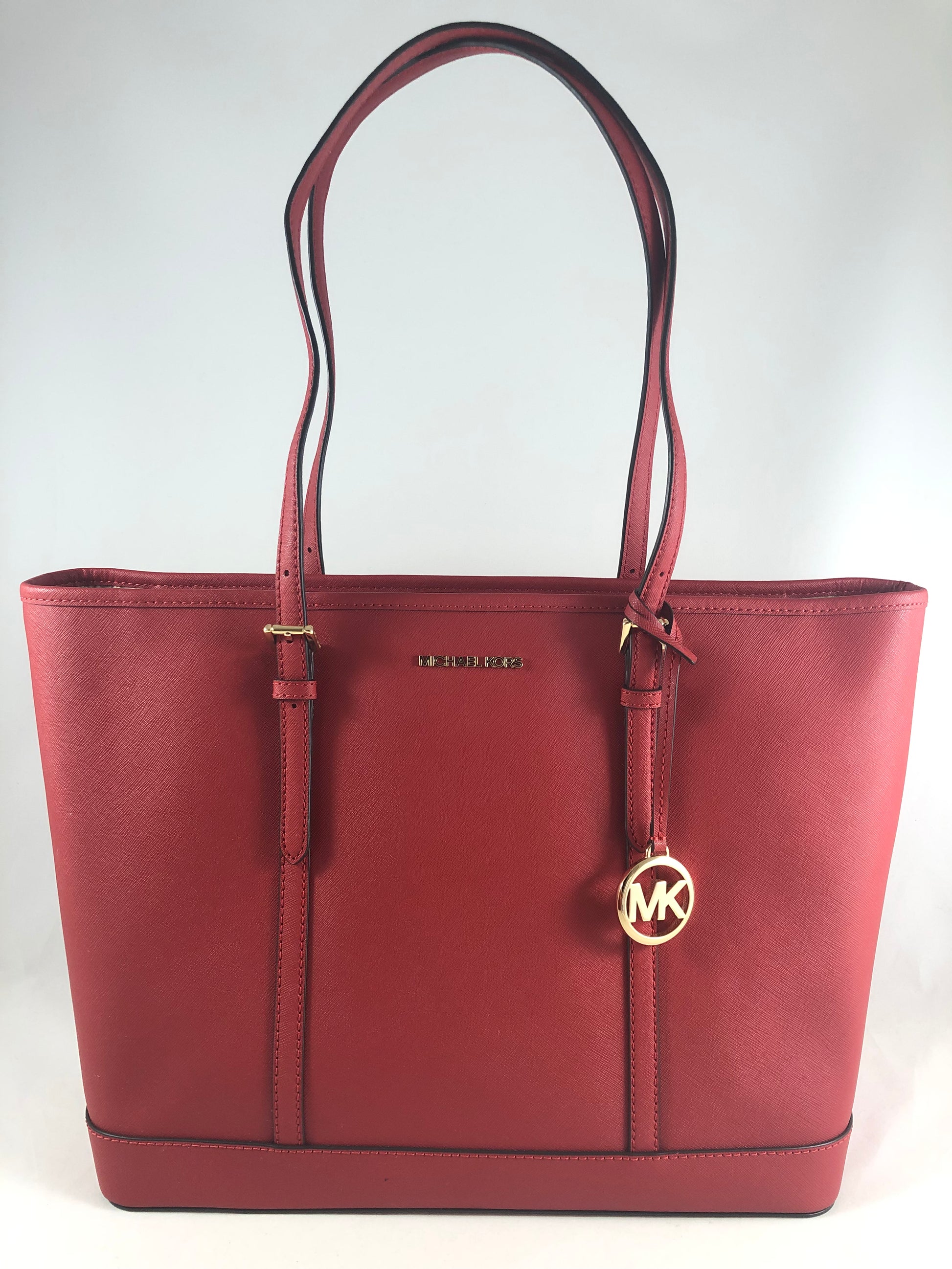 New Authentic Michael Kors Jet Set Travel Large Leather Top Zip Shoulder Tote
