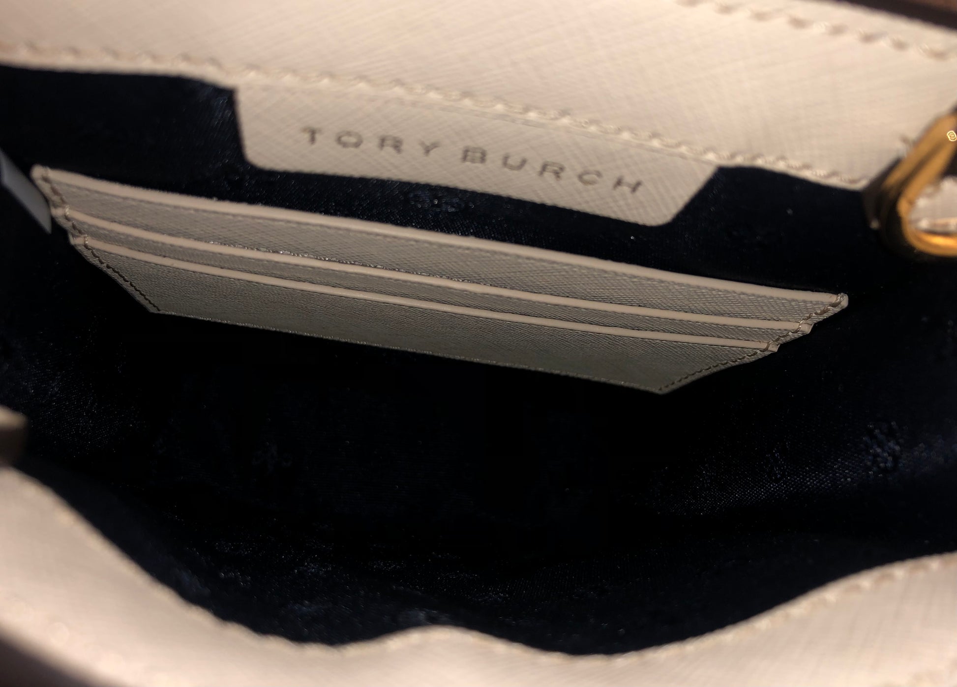 Signature Tory Burch fabric-lined interior